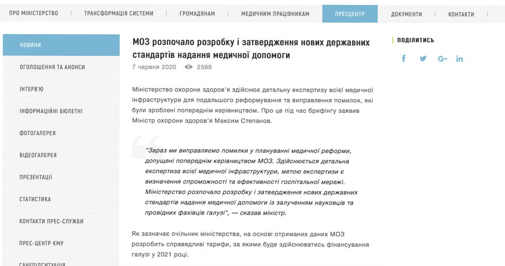 В то же время, недавно на брифинге министр здравоохранения Максим Степанов говорил противоположное: "Министерство начало разработку и утверждение новых государственных стандартов оказания медицинской помощи с привлечением ученых и ведущих специалистов отрасли". Он добавил, что на основе полученных данных Минздрав разработает справедливые тарифы, по которым будет осуществляться финансирование отрасли в 2021 году.