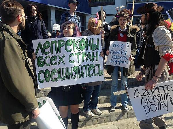 В Новосибирске в честь дня труда проходит "Монстрация", лозунги которой кажутся абсурдными.