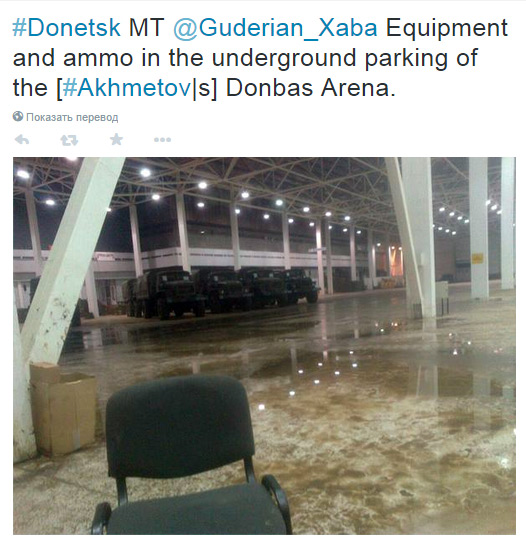 В Донецке в здании стадиона «Донбасс арена» замечены военные грузовики.