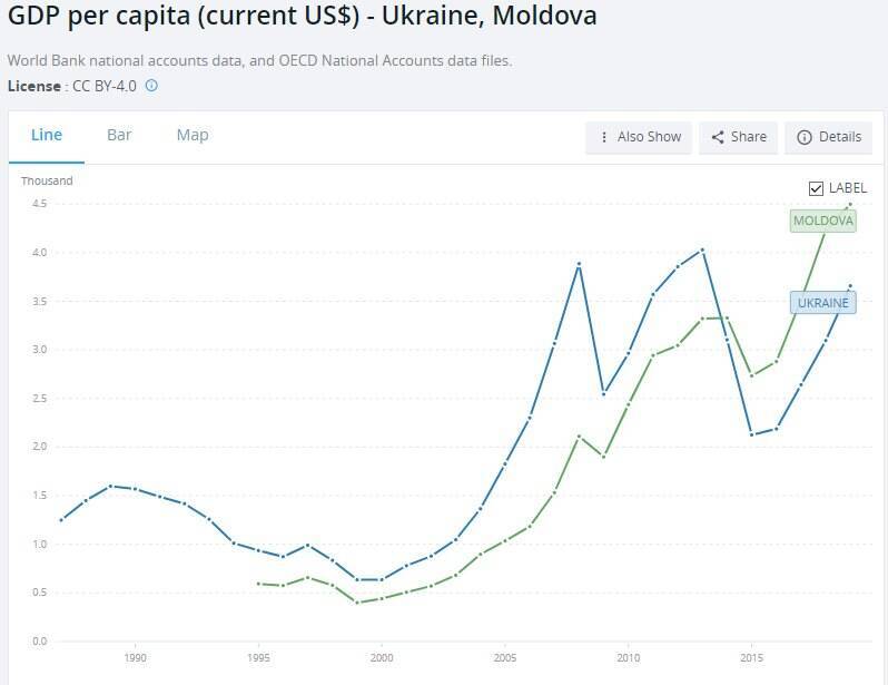 ВВП на душу населения: Украина $3 659,03; Молдова $4 498,52;