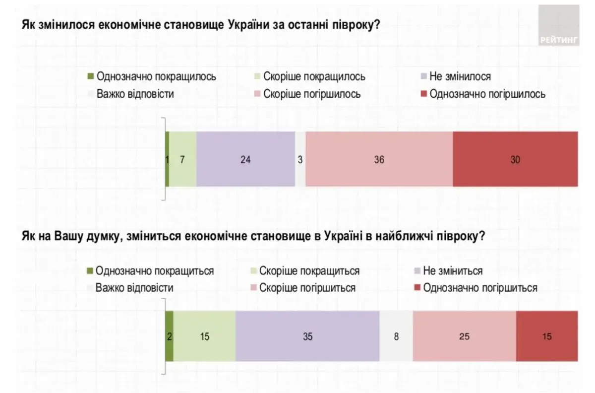 Свыше 60% заявили, что экономическое положение в Украине ухудшилось за последние полгода, четверть полагают, что оно осталось неизменным и лишь 8% заметили улучшение.