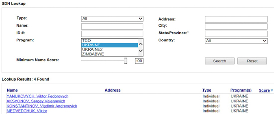 | Источник sdnsearch.ofac.treas.gov/default.aspx. Нажмите для увеличения |