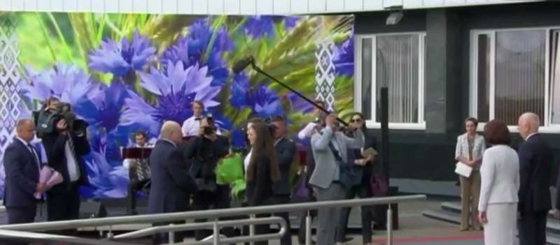 Судя по кадрам, обнародованных телеканалом "Беларусь 24", Лукашенко встречали с цветами и музыкальным сопровождением – музыканты играли на гармошке