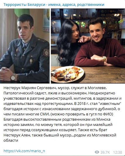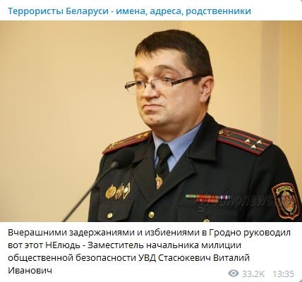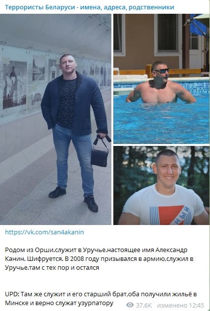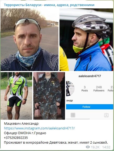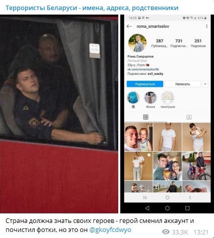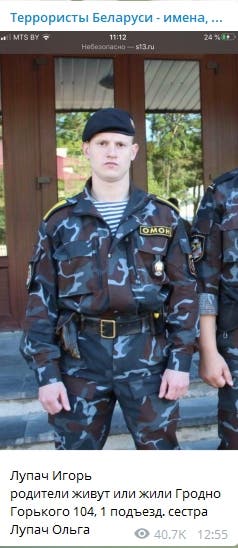 В Telegram появился канал «Террористы Беларуси – имена, адреса, родственники», в котором публикуют фото и данные о белорусских силовиках, участвующих в разгонах протестов.