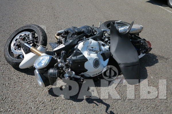 Как сообщает корреспондент «ФАКТОВ», со слов водителя автомобиля, он двигался на выезд из города. Перед АЗС начал маневрировать водитель мотоцикла. Транспорт в левом ряду приостановился. Стали тормозить и водители, движущиеся в среднем ряду. А водитель BMW, ехавший в крайней правой полосе, мотоциклиста не видел и продолжил движение.