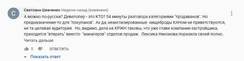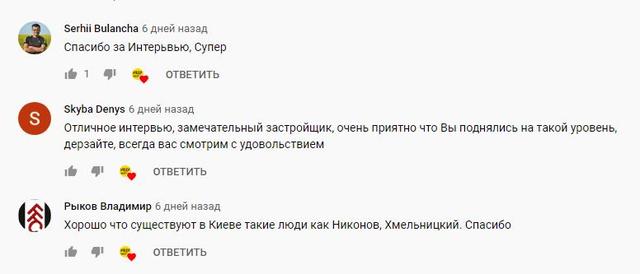 8 августа на одном из каналов поиска жилья в Киеве появилось свежее интервью Игоря Никонова о том, какой он молодец. А вы видели свежее это интервью на Youtube? А оно есть… За неделю более 33 тысячи просмотров, другими словами – масштабная реклама, а судя по комментам и лайкам к видео, к построению позитивного имиджа была привлечена большая команда «специалистов». А если простыми словами, то ботоферма там пашет не по-детски и явно не бесплатно. Так что, читая отзывы, анализируйте информацию. Когда куча идентичных комментов во славу автора, это как минимум смешно, а, по факту, грустно.