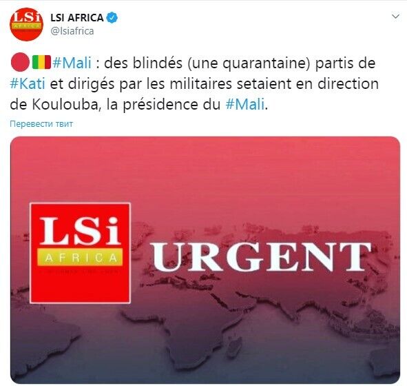 Несколько высокопоставленных военных чинов при поддержке армии захватили аэропорт, центральный офис телевидения и первых лиц государства. Также арестован президент страны Ибрагим Бубакар Кейт.