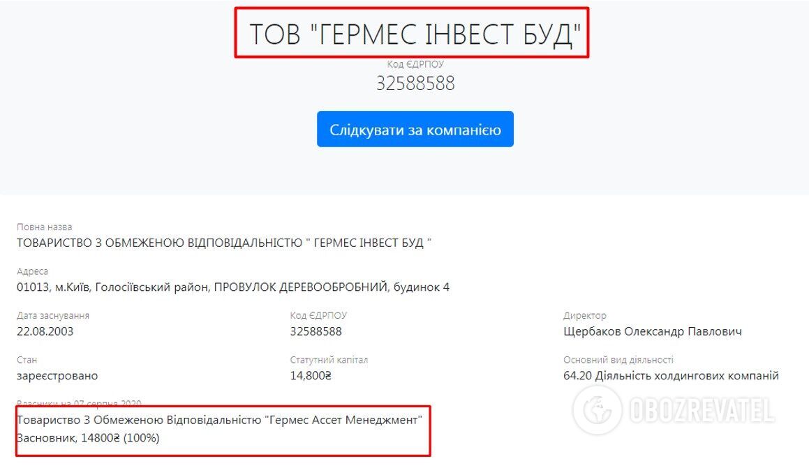 "Гермес Инвест Строй" было зарегистрировано в сентябре 2003 года в Голосеевском районе Киева. Указанный вид деятельности – это деятельность холдинговых компаний.