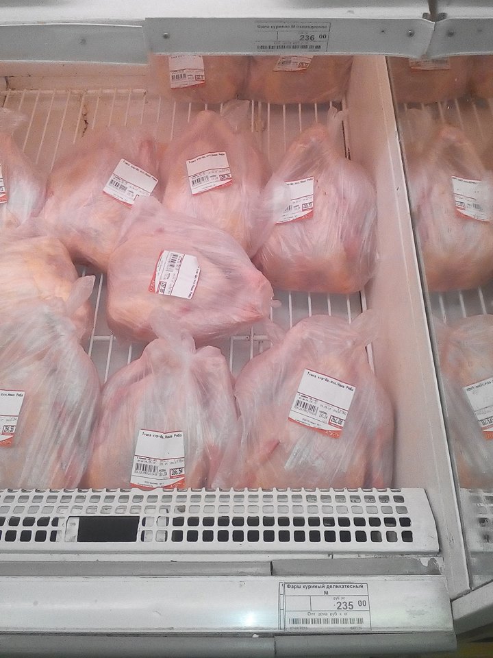 Бедро куриное - 160 руб. Филе - 236. целая курица - 131 руб. Водка - 347 руб. 0,5 л. и 503 руб 0,7 л. Масло - 70 руб. макароны - 68 руб. Мясо - 350-400 руб (не смог сфотографировать) Нормальные шоколадные конфеты - от 500 руб. Удивила цена на муку - 19 руб/кг. Теперь о качестве продуктов. Местная продукция (молочка, колбасы) всегда были неплохого качества. Не испортились они и сейчас. Все, что завезено с материковой части РФ через переправу, есть невозможно. Вкус отвратительных. Но это, видимо, дело привычки.