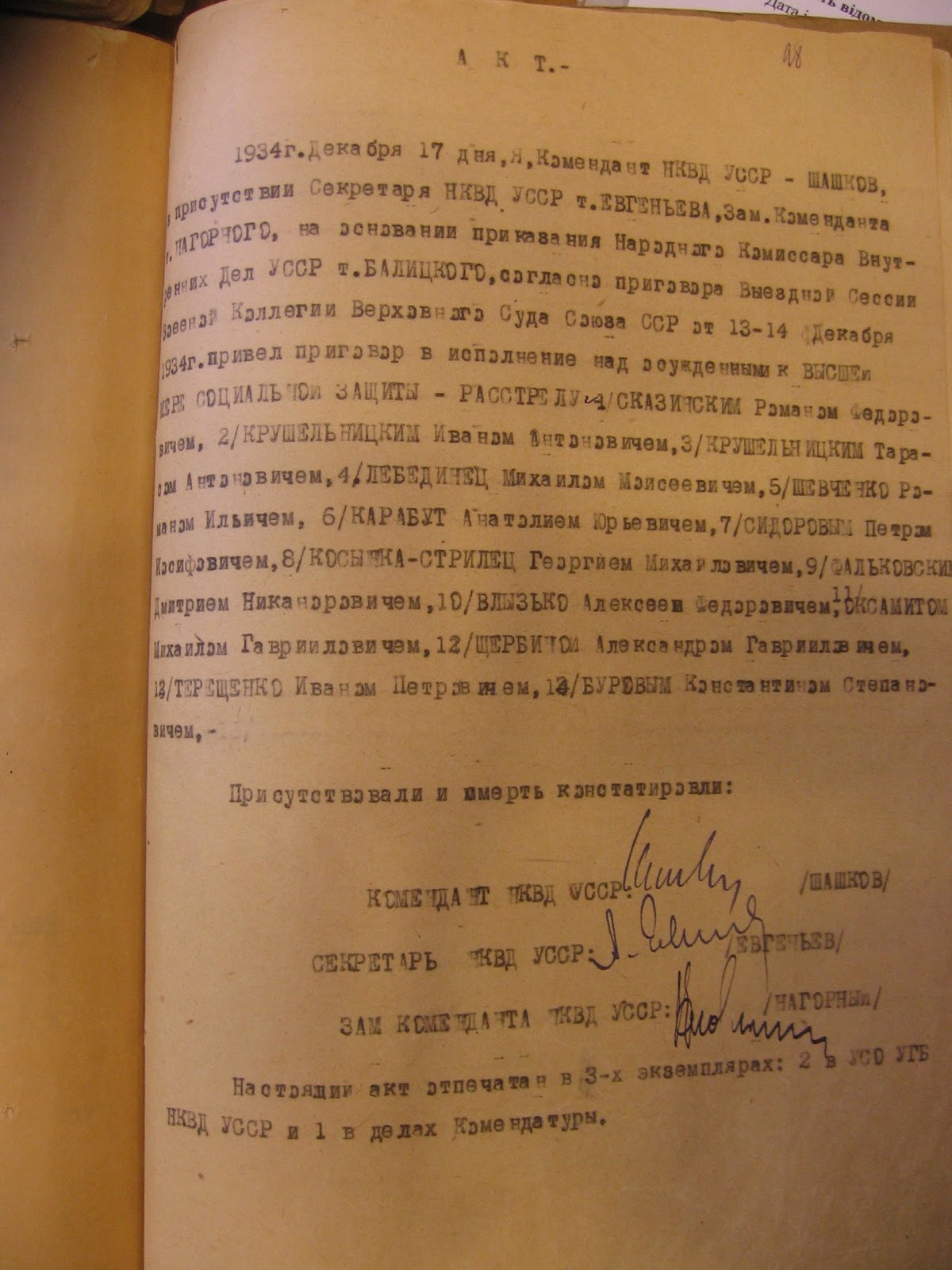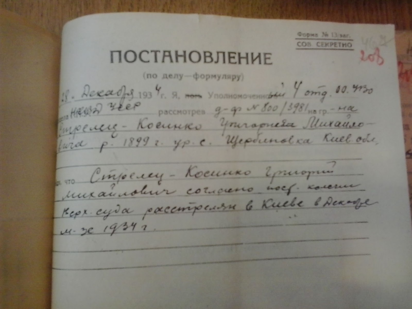 Григория Косынку вместе с 14-ю украинскими деятелями расстреляли в Киеве 17 декабря 1934 года