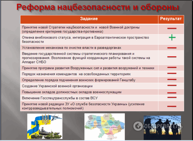 В условиях продолжающейся агрессии России на востоке Украины это направление является одним из самых важных и приоритетных. Здесь определены 12 задач, но к категории выполненных можно отнести всего 1 (хоть и в неполном объеме):