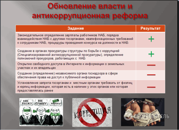 Тоже важное направление, особенно на фоне громких лозунгов об очищении госаппарата от представителей бывшего преступного режима и успешно процветающей в стране коррупции.