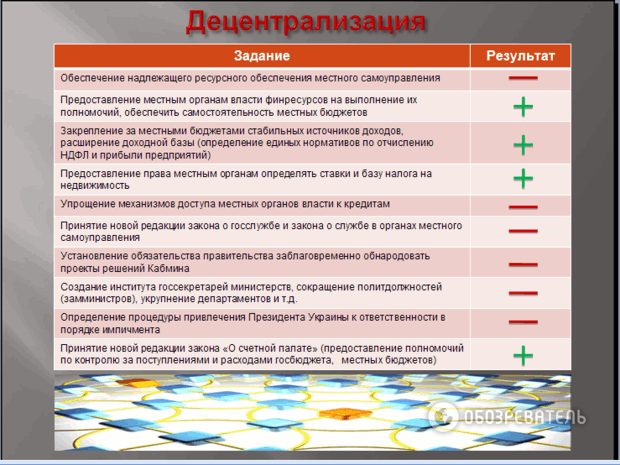 1) принятие необходимых изменений в Бюджетный, Налоговый кодексы, другие законы, которые обеспечат надлежащее ресурсное обеспечение местного самоуправления (не выполнено)