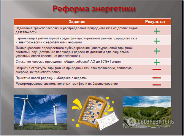 Если "закрыть глаза" на тот факт, что Закон Украины "О рынке природного газа" был принят на несколько дней позже окончания первого квартала 2015 года, то можно считать, что это направление оказалось на втором месте по "выполняемости" (после налоговой реформы) – из 7 задач результат есть по 4: