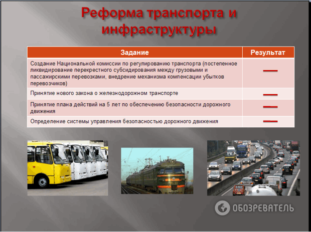7) вывод из подчинения Мининфраструктуры Госспецтрансслужбы и включения ее в состав ВСУ (не выполнено)