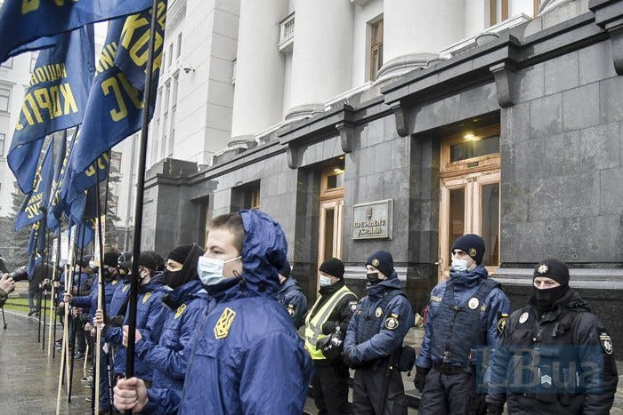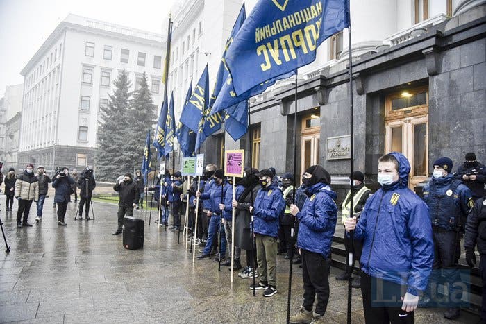 В пятницу, 4 декабря, в Киеве у Офиса президента прошла акция «Национального корпуса» с требованием увольнения главы Офиса генпрокурора Ирины Венедиктовой, главы ОП Андрея Ермака и его заместителя Олега Татарова, передает Lb.ua.