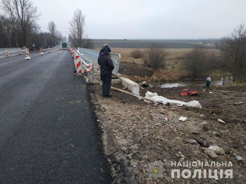 В Винницкой области произошло серьезное ДТП — водитель автомобиля столкнулся с бетонной конструкцией моста и съехал в реку.
