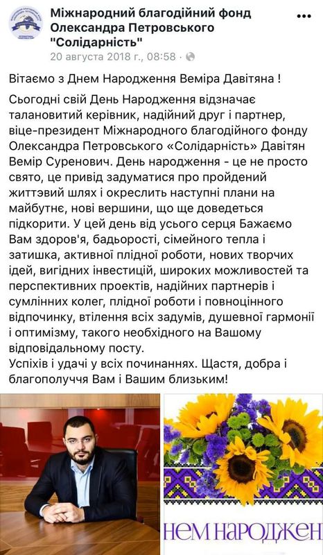 Интересный нюанс заключается в том, что фонд «Солидарность» — детище днепропетровского «авторитетного бизнесмена» Александра Петровского (Налекрешвили), которого по словам экс-генпрокурора Юрия Луценко, в определенных кругах называли «Нарик» (по первоначальной фамилии). Александр Петровский считается одним из самых влиятельных людей Днепра.
