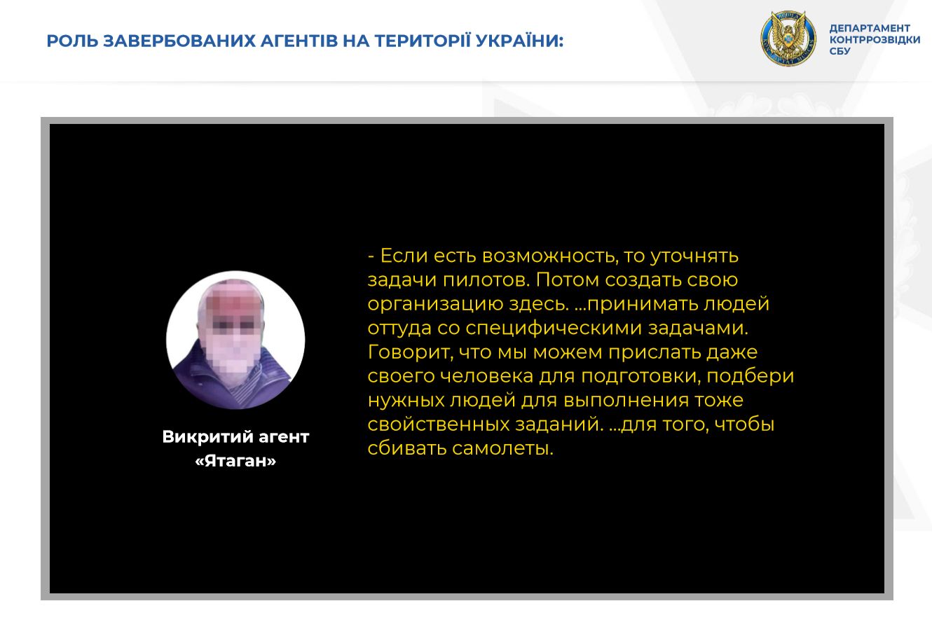 «В частности, российские агенты готовили диверсионные операции. Им было поручено создать условия для совершения диверсий на территории Николаевской области — способствовать проникновению ДРГ с временно оккупированных территорий и организовывать специальную подготовку подобранных лиц. Среди объектов посягательств — боевые самолеты Вооруженных Сил на аэродроме «Кульбакино», — говорится в сообщении.