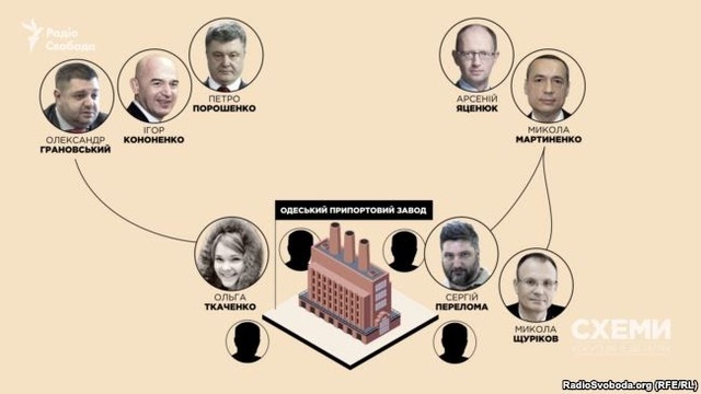 По данным сайта far.chesno.org, Ольга Ткаченко имеет тесные связи с уже упоминаемым Александром Грановским и Игорем Конононеко, также народным депутатом от БПП, которые вместе с еще одним членом команды бывшего президента – Николаем Мартыненко – контролировали Одесский припортовый завод.