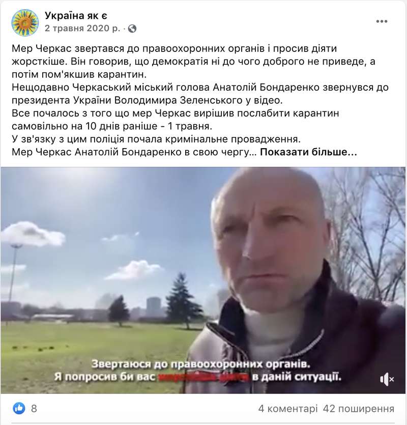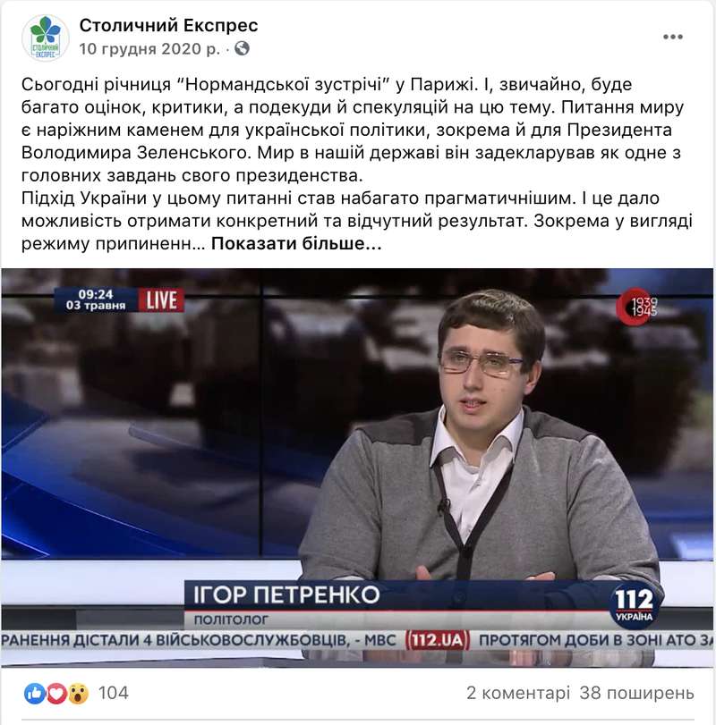 На кількох публічних сторінках у Facebook створюється публікація із посиланням на думку експерта.
