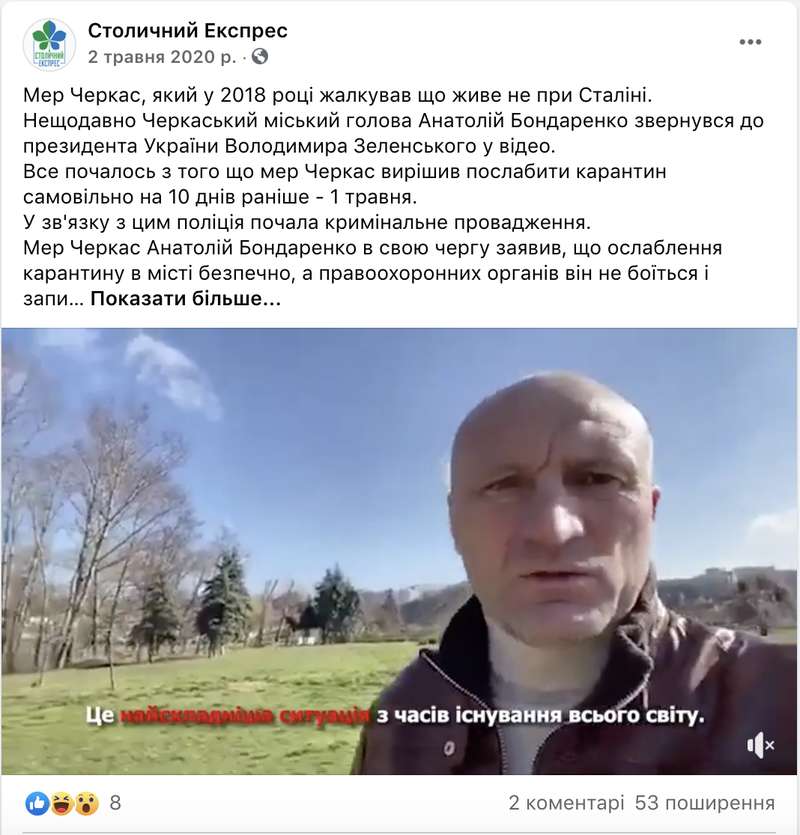 Як не дивно, у списку “жертв” був і мер Черкас Анатолій Бондаренко, який кинув карантинний виклик Зеленському: