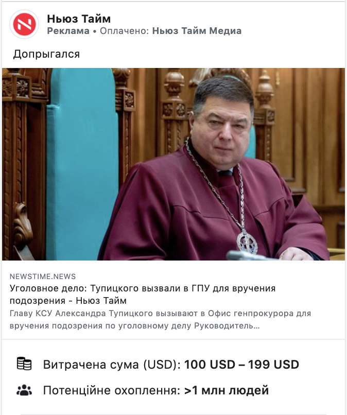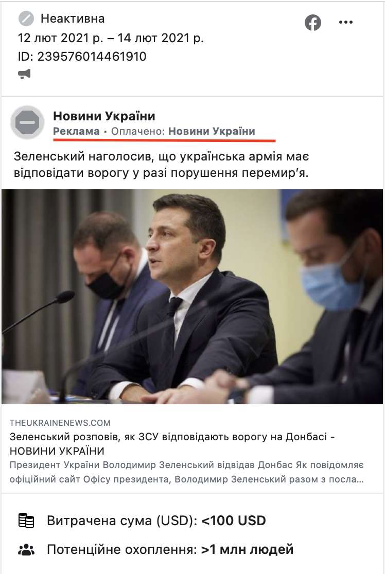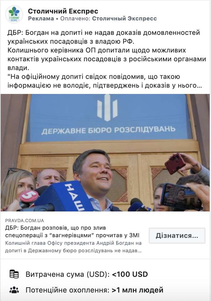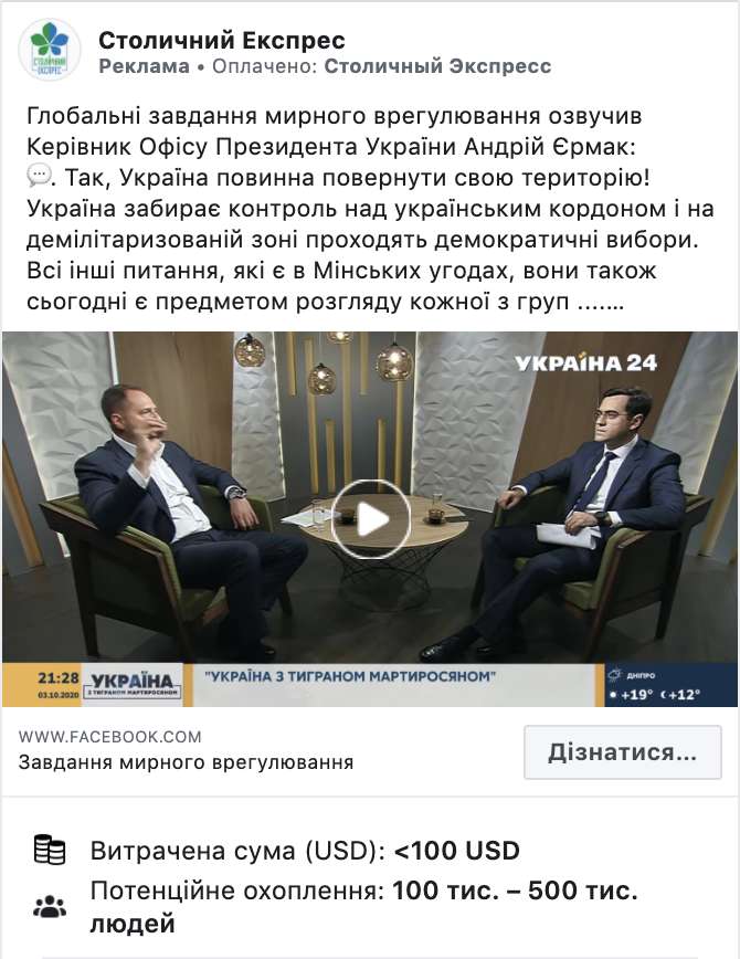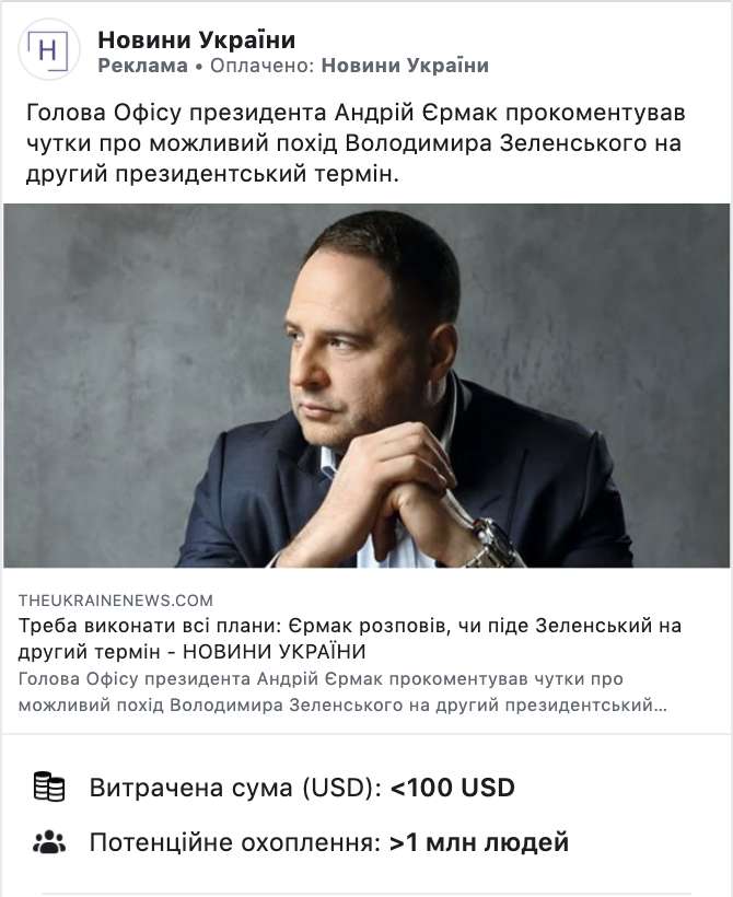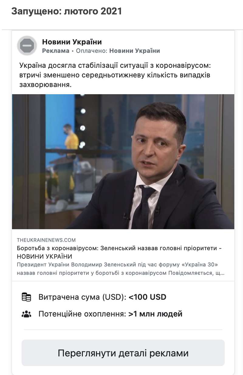 Усього на політичну рекламу ці сторінки витратили майже 778 тисяч гривень (дані взято з відкритої для всіх Бібліотеки реклами). Наразі сторінки, на яких ставили політичну рекламу, видалені, тож інформація залишається тільки на скріншотах.
