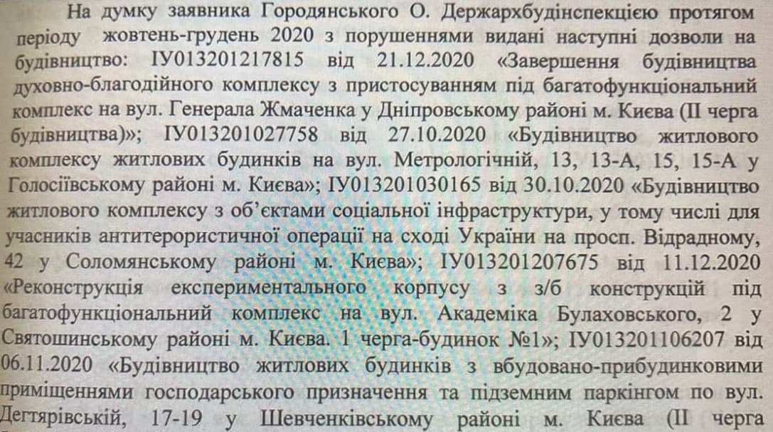 Факти, отримані від джерел у ДБР, які ми не маємо наміру розкривати, чітко демонструють, що написана Городянським заява є цілеспрямованою спробою дискредитувати керівництво центрального ДАБІ і в такий спосіб ініціювати зміну керівництва інспекції, а також поставити у стійло одного з найбільш нахабних київських забудовників, який відмовився платити мзду. Мова йде про теж досить одіозну персону, а саме про відомого столичного забудовника екс-нардепа Володимира Зубика.