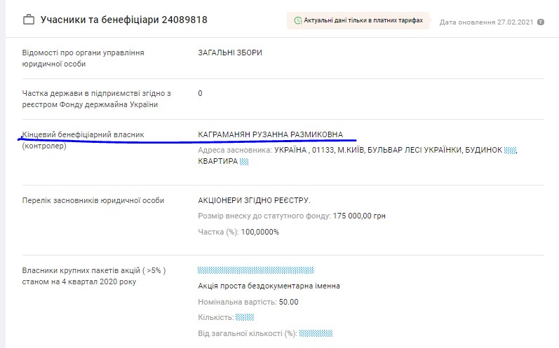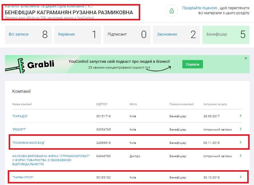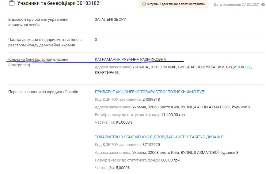 У этой элитной застройки целых два застройщика:«Позняки-Жил-Буд» и «Тарян Групп». Две эти компании оформлены на некую Каграманян Рузанну Размиковну, которая является матерью Артура Мхитаряна. Она же является бенефициаром этих компаний.
