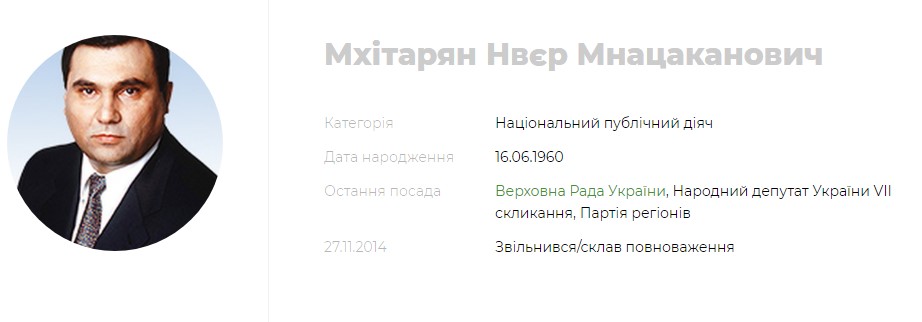 Отец одиозного семейства Нвер Мхитарян родом из Армении. В далеком 1996-м году он создал компанию «Познякижилстрой». Его избирали депутатом Верховной Рады на протяжении трех созывов. На протяжении с 2002-го по 2006-й года он был в провластном блоке «За единую Украину». Далее с 2007-го по 2014-й он был среди регионалов.