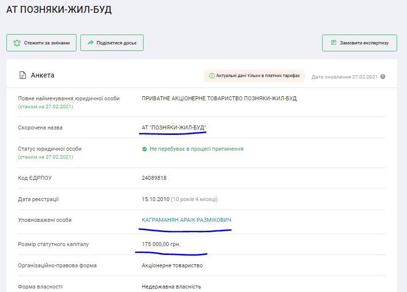 Первый застройщик – акционерное общество «Позняки-Жил-Буд» имеет статусный капитал 175 000 гривен.