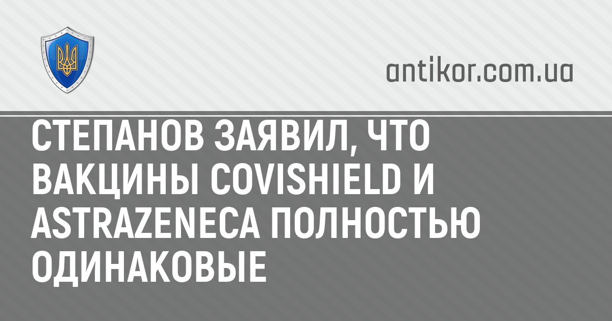 Министр здравоохранения Украины Максим Степанов заявил, что вакцина от коронавируса компании AstraZeneca, произведенная в Индии и поставляемая в Украину под названием Covishield, абсолютно идентична с препаратом, который поставляют в Великобритании и в Евросоюзе.