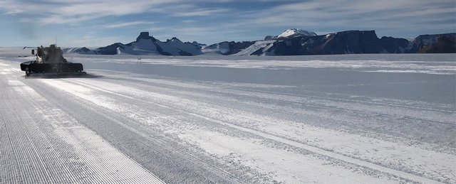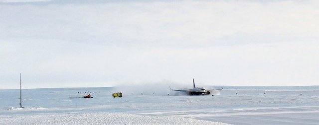 Чтобы самолет приземлился, в Антарктиде подготовили импровизированную взлетно-посадочную полосу. Для этого с поверхности убрали неровности и создали шероховатости, чтобы между шасси и льдом возникло сцепления, и самолет не занесло.