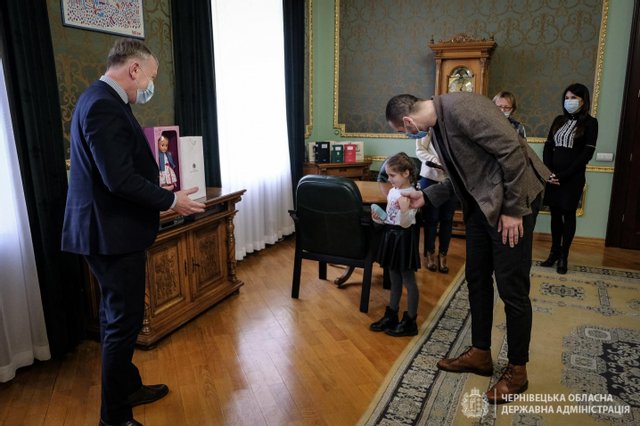 Маленькая Маргарита не только посетила кабинет главы Черновицкой ОГА Сергея Осачука, но и получила несколько подарков от имени президента Зеленского.
