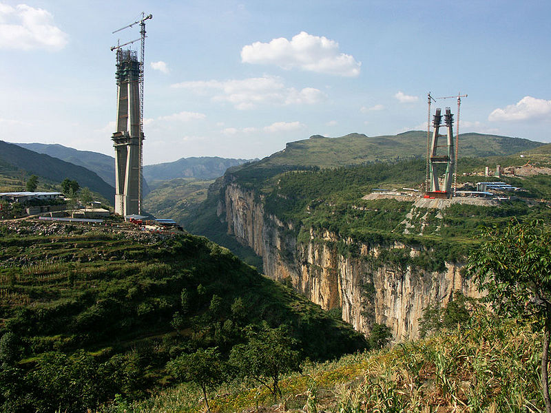 Крупнейший железнодорожный виадук в мире — Caijiagou Railway bridge. Массивные опоры выполнены в форме китайского иероглифа — «люди»: