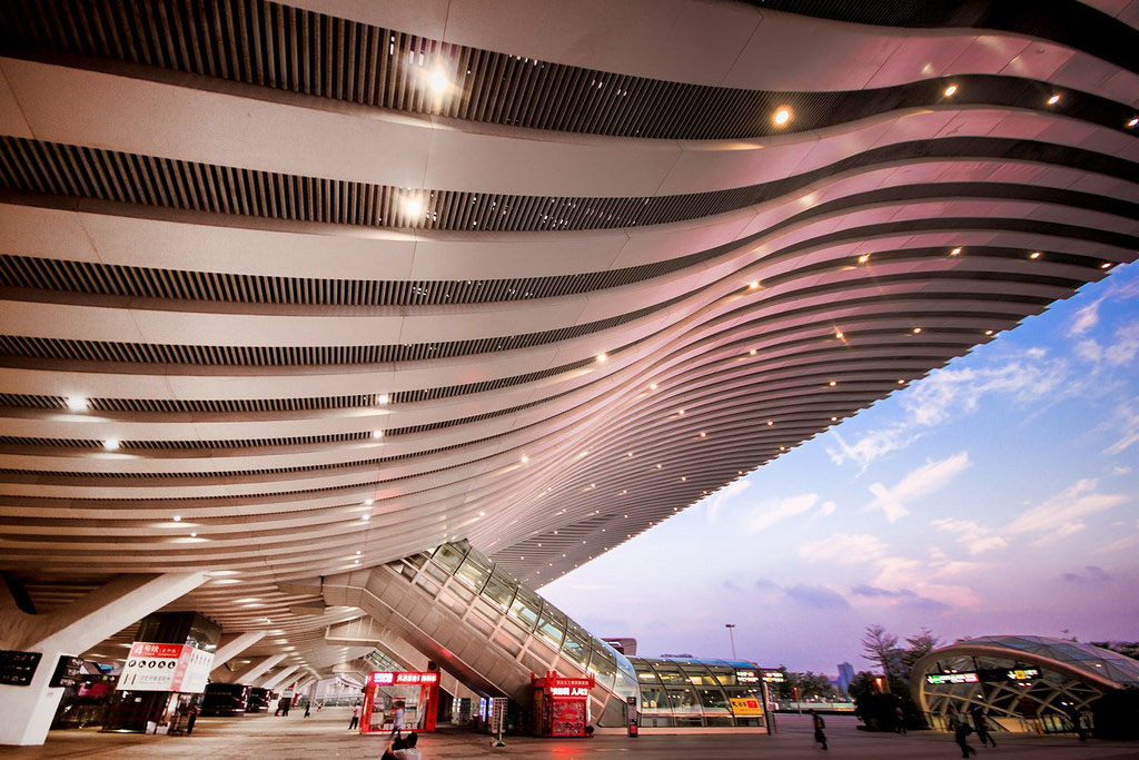 Пожалуй самым футуристичным аэропортом в мире можно назвать аэропорт Шэньчжэнь Баоань. Новый терминал, разработанный итальянской архитектурным бюро Фуксас, поражает своим дизайном как внутри, так и снаружи.
