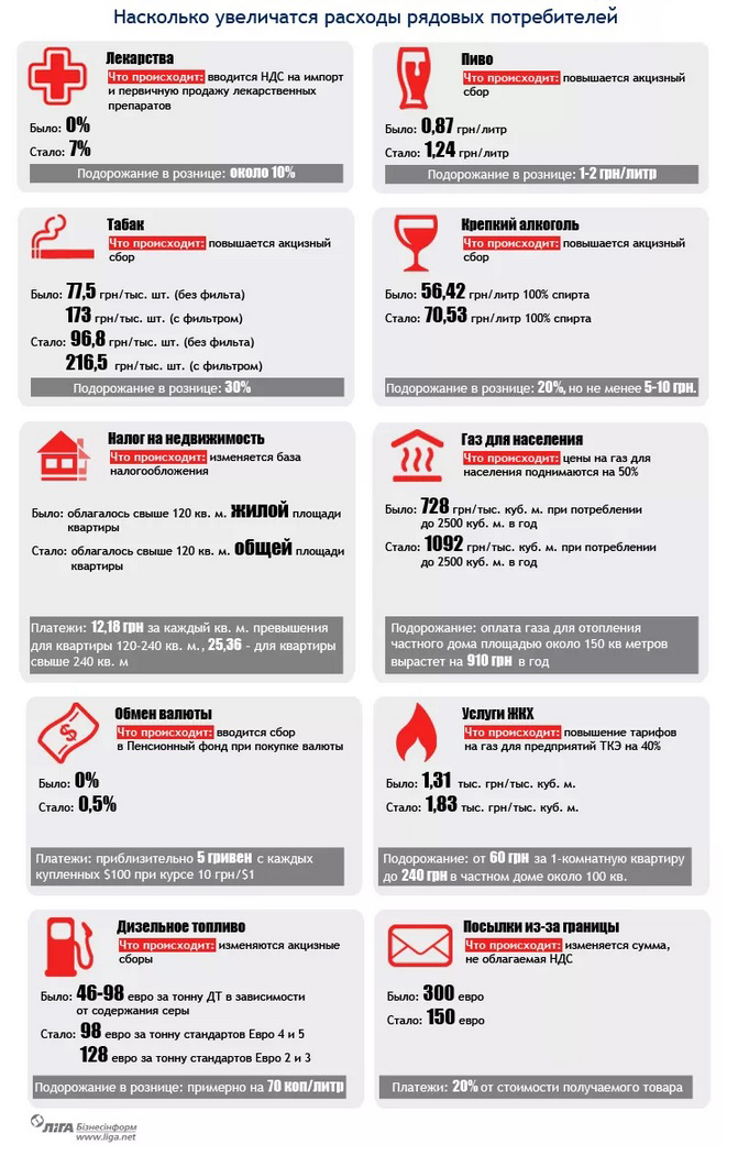 Так, в частности, из средней заработной платы в области образования, за январь 2014 по данным Госстата Украины составляет 2476 гривен, взимается налог в размере 358 гривен, в области здравоохранения - 327 грн с 2270 грн, в сфере культуры 469 грн с 3200 грн, в сельском хозяйстве - 305 грн с 2100 гривен. В это же время, владельцы крупных вкладов ничего не платят в бюджет.