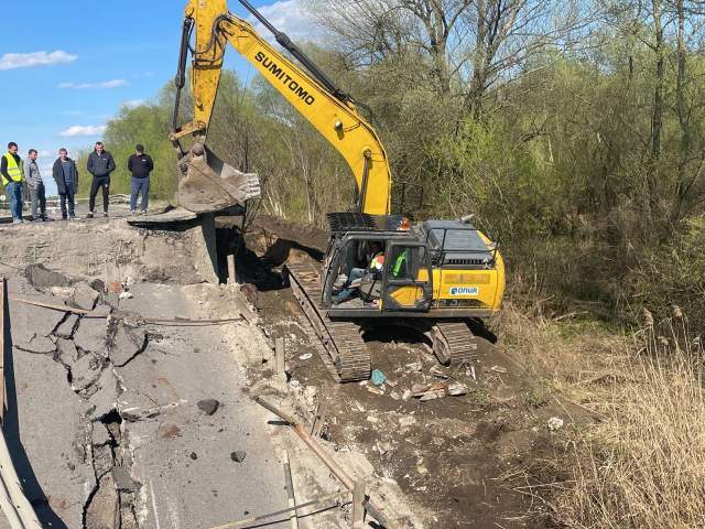 Для объезда разрушенной переправы уже установили все соответствующие дорожные знаки. Сейчас рабочие начали демонтаж разрушенных элементов моста и подготовку к проведению аварийно-восстановительных работ.