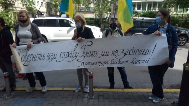 На плакатах присутніх були слогани «Прокуратура: Поверніть нам справу Гунька - ми не закінчили», «Поверніть нам землі» та інші. Учасники мітингу передали звернення на ім’я генпрокурора України Ірини Венедіктової з вимогою, аби представники відомства звернула увагу на стан ведення кримінальних справ, пов’язаних з розкраданням земель ДП «Радіопередавальний центр» на Київщині.