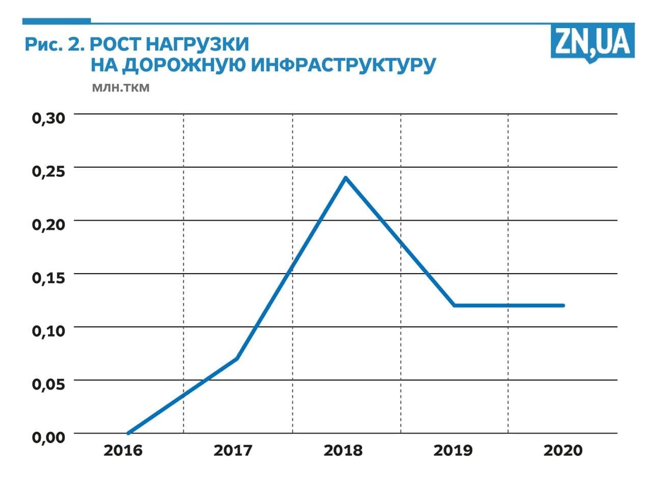 Так, грузооборот по железной дороге уменьшился с 188 млн тонно-километров в 2016 году до 176 млн ткм по итогам 2020-го (на 6,4%). В то же время грузооборот автотранспортом вырос с 58 до 65 млн ткм (на 12%) (см. рис. 1).