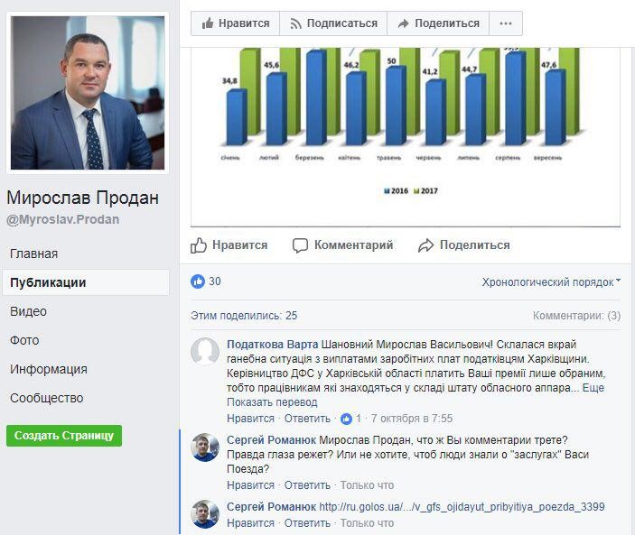 Заметим, что на скандал тогдашний глава ведомства ГФС Мирослав Продан тщательно «игнорировал» комментарии юзеров на своем фейсбуке, но все-таки что-то зачистить не успел.