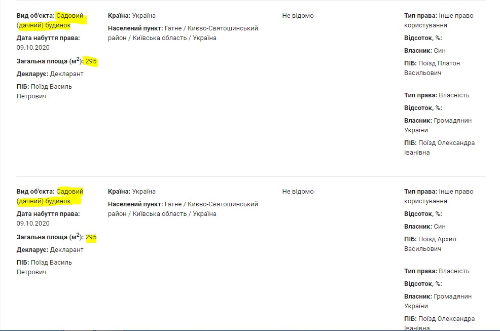 Заметим сразу, что вся недвижимость без исключения записана на жену и сыновей. Василию Поезду ничего не принадлежит… И еще интересный факт, квартир у семьи нет, только 4 дачных дома.