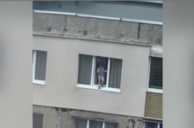 На кадрах видно, как мальчик стоит на металлическом подоконнике, держась одной рукой за раму, а затем заходит в комнату. Даный случай произошел вчера, 5 июля. В пресс-службе полции сообщили, что в этот момент за ребенком присматривала бабушка и его 12-летний брат. Но не досмотрели. Они находились в соседней комнате.