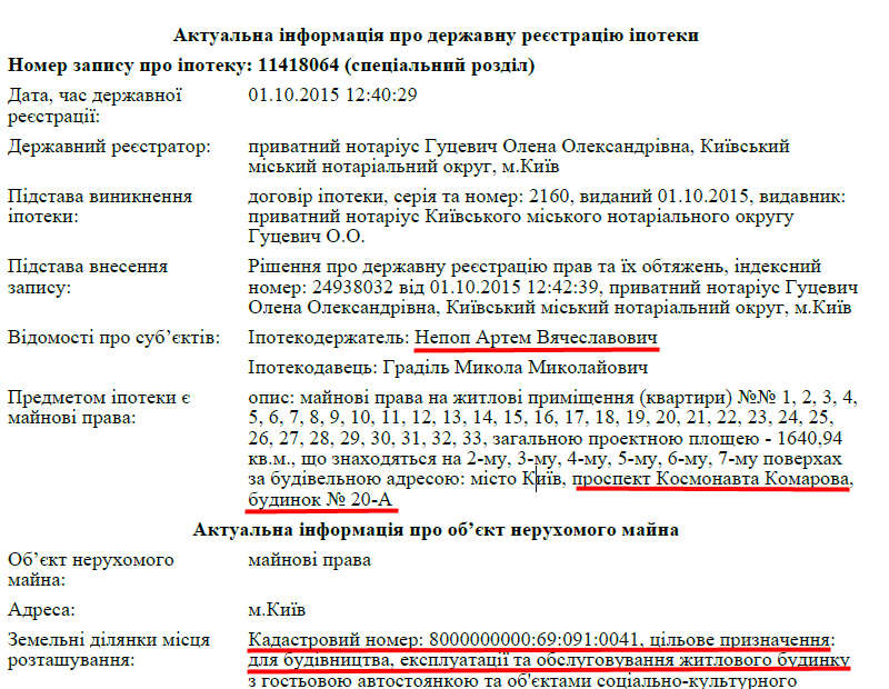 У жовтні 2018 року МВС відкрило справу щодо незаконного заволодіння квартирами і у фабулі справи фігурувало прізвище В’ячеслава Непопа, а вже у 2019 році справою про незаконне привласнення квартир у будинку по проспекту Космонавта Комарова 20-а зацікавилась Служба безпеки України.