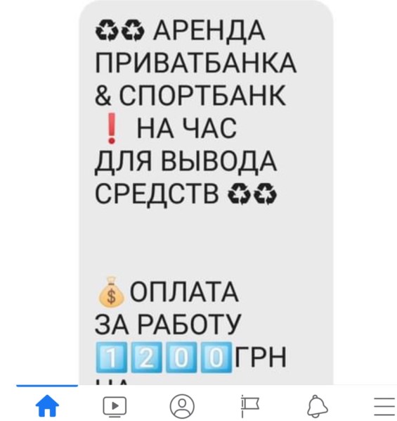 Вместо заработка на сдаче собственной банковской карты в аренду пользователи получают только проблемы. Подобными объявлениями буквально пестрит социальная сеть Facebook, достаточно ввести поисковый запрос и увидеть такие объявления. В основном злоумышленники распространяют такие объявления в группах, где собираются любители «халявы» и легких денег. Подробности в объявлении не распространяют, всех делающих приглашают в личные сообщения, обещая, что это не какой-нибудь лохотрон, а связано со ставками в интернете.