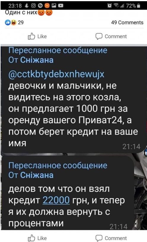Теги: АферистыУкраинаБанковские карточкибанковская картаСоцсетиИнтернетМошенникиМошенничество