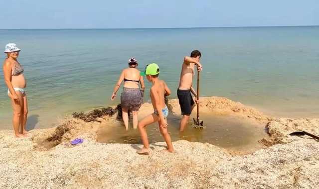 На Арабатской стрелке туристы решили вырыть бассейн на берегу Азовского моря. Все для того, чтобы насладиться морской водой без риска получить ожог от медуз.