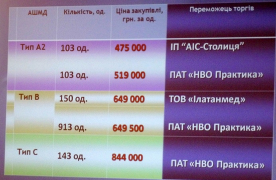 Найменша з "виграшних" пропозицій була у "АІС-столиця". За результатами торгів компанія уклала угоду з МОЗ на постачання 103 машин на 48,9 млн грн.