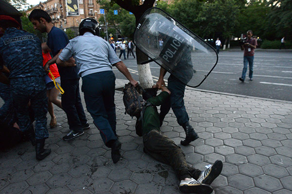 Всем задержанным в Ереване вменяется хулиганство. Генпрокуратура Армении уже заявила, что демонстрантам, попавшим в руки полиции, грозит до двух лет лишения свободы.