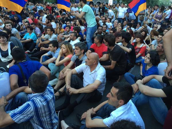 Число участников акции постепенно росло, 22 июня на проспекте Баграмяна протестовали уже несколько тысяч человек. Они собирались дойти до резиденции президента Армении, но путь им преградила полиция. Вчера вечером и ночью митингующие сидели на асфальте и скандировали требования об отставке Сержа Саргсяна, переговоры с полицией ни к чему не привели.